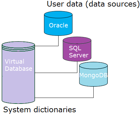 The dbSpaces CORE Server accesses your organization's data using DBMS adaptors (sometimes known as drivers) and defined as Data Sources in dbSpaces. A data source is created within the dbSpaces System Database and once created is available to all the Virtual Databases in dbSpaces. A Virtual Database can contain database objects from any number of Data Sources. |